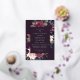 Chic floral baptism or christening invitation features a border of burgundy marsala purple, blush pink, and dusty blue flowers, with lush botanical foliage and greenery and gold foil trim. Personalise with your church ceremony and celebration details in modern lettering on a rich dark purple background.