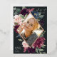Elegant floral photo graduation announcement features a vertical photo in a diamond shaped frame of watercolor flowers and foliage in rich shades of dusty rose pink, burgundy plum purple, sage green, and dusty dark blue with rose gold foil trim. Personalise with your graduate's name, class year, and school. Add a personal message to the back, along with an additional photo.