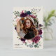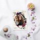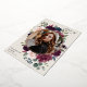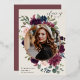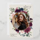 Our Plum Blossom graduation announcement frames a photo of your graduate with an elegant round border of lush watercolor foliage and flowers in blush pink, burgundy plum purple and dark dusty blue, with real rose gold foil trim on a rich ivory off-white background. Personalise with your graduate's name, class year and school. Add a personal message to the back, along with an additional photo.