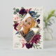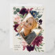 Elegant floral photo graduation announcement features a vertical photo in a diamond shaped frame of watercolor flowers and foliage in rich shades of dusty rose pink, burgundy plum purple, sage green, and dusty dark blue with rose gold foil trim. Personalise with your graduate's name, class year, and school. Add a personal message to the back, along with an additional photo.
