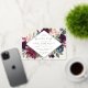 Elegant floral graduation party invitation features a diamond shaped frame of watercolor flowers and foliage in burgundy, purple, dusty rose, blush pink, dusty blue, and dark sage green, and finished with rose gold foil trim. Personalise with your graduation party details.