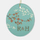 Plum Blossom Monogram Custom Ornament Teal Blue