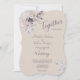A pretty watercolor floral bouquet in tones of plum blush with touches of blue decorates the left top corner of this wedding invitation. The front features your custom wedding text in darker grey violet against a pale plum blush background. Stylised text at the top says "Together". A simple matching leaf decoration is at the bottom right. The back of the invitation is matches the colour of the text. Appropriate for spring, summer, and autumn weddings.