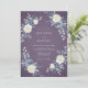 This enchanting design features a deep plum background adorned with delicate brushstroke florals. Creamy white and soft blue blossoms intertwine with grey-toned leaves, creating an elegant, artistic atmosphere. A romantic, painterly feel perfect for a sophisticated affair.