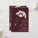 Beautiful bridal shower invitation featuring a cream flower stem set on a plum wine background. The back features an elegant coordinating floral back for an extra special touch.