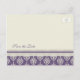 Wedding save the date announcement postcards in elegant dark purple and off white classic vintage style pattern, stylish and fully customisable with your wedding details. Also available in many other products for the wedding party.