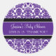 Baby shower thank you favour tag sticker in elegant dark purple, black and white classic floral damask pattern. Customisable with your own text, contact us for a colour change. The perfect way to decorate your baby shower favours and thank your guests for being a part of your special day.