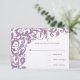 Purple Damask Swirl Wedding Invitations Purple Grape Plum Wedding Response Cards, Silver metallic paper.