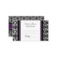 Wedding table place setting cards in elegant dark purple, black and white classic floral damask vintage pattern, also available in many matching wedding products, contact us to request a colour change or custom design.