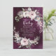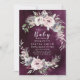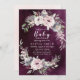 Painted watercolor botanical floral and greenery in rustic dusty pink, burgundy and grey colour on moody plum purple watercolor background, modern and elegant, great baby shower invitations.