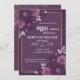 Set the tone for your sophisticated wedding celebration with this elegant and romantic wedding invitation. Featuring a rich plum or deep purple background accented by delicate dusty rose and magenta floral illustrations, this design captures a moody, luxurious aesthetic. The main details are elegantly framed by a subtle metallic gold border, adding a touch of classic refinement. The reverse side features a solid plum color with a simple, modern phrase like "Save the Date" or "Kindly RSVP." Easily personalize the modern typography to include all your essential details: couple's names, event date, time, location, and RSVP information. Perfect for fall, winter, or evening weddings, this customizable template suits various sophisticated themes, including romantic, dramatic, garden, or modern luxe styles.