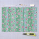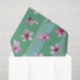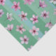 Pink plum blossoms float on green and aqua stripes.