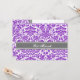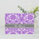 Custom Bat Mitzvah party invitations in elegant bright purple, grey and white classic floral damask pattern. Add your name and party details for a unique and stylish Bat Mitzvah party invitation.