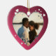 For the happy couple, add a photo and customise text on back. Shimmery Hearts and ribbon photo ornament.
