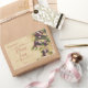 A vintage style label for jams and jellies with an illustration of purple plums on a branch with green leaves, made from an old postcard painting, with brown coloured scrolls and text. The date can be left for writing the date, or change the dotted text to the year you require.