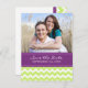 Wedding custom photo save the date announcement postcards in elegant and contemporary chartreuse lime green, eggplant dark purple and white fun and modern zigzags chevron pattern, stylish and fully customisable with your wedding details and your own photo. Also available in many other products for the wedding party.