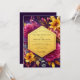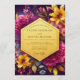 This design features a vibrant and dramatic arrangement of florals set against a deep, moody background. Luminous magenta dahlias and golden yellow lilies burst with color, creating a feeling of opulent romance. The rich, jewel-toned palette of plum, gold, and fuchsia makes this a truly striking choice for a luxurious affair.
