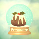 This seasonal winter plum pudding, topped with a holly sprig with red berries, is nestled in the snow of this snow globe. Unique.. Personalise if you wish.