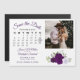 Plum Purple Floral Calendar & Photo Save the Date Magnetic Invitation