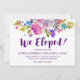 These plum purple garden elopement announcement cards have a beautiful floral theme design. The design features bright magenta, pink, plum purple and blue flowers, and a lovely bold script font. The front of the card reads "We Eloped!". Personalise the floral wreath backing with an initial monogram of the new mr and mrs. Designed with Care by Miriam at Fresh & Yummy Paperie. For coordinating items, please visit my Zazzle store: