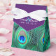 Elegant plum purple and vibrant emerald green, royal blue and teal blue peacock feather wedding favour boxes. You can add text in the font style, size and colour of your choice on this beautiful plum purple peacock wedding favour box.