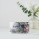 Define your brand with the ethereal drama and artistic elegance of a secret garden using this captivating business card. The design is dominated by an opulent cluster of velvety roses and wild foliage in a sophisticated, muted palette. The focal points are large blooms in deep plum purple and soft, dusty pink mauve, which contrast beautifully against the misty, dark blue-gray background. This background features a ghostly woodland or misty garden scene with subtle, sparkling light effects. A thin, clean metallic gold rectangular frame highlights the clear, central area, providing a refined space for your information. This artwork beautifully merges the quiet mystery of a hidden garden with the rich, romantic drama of dark florals, resulting in a unique and sophisticated brand statement. This business card is ideally suited for a high-end independent perfumer promoting deep, complex, atmospheric scents, a creative artist or illustrator specializing in fantasy or nature themes, or a luxury event stylist specializing in moody, ethereal celebrations. It would also perfectly suit a boutique hotelier wanting to convey a mystical, picturesque setting, or a vintage fashion curator whose collection is inspired by deep romance.