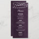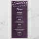 Chic modern summer wedding menu card design with simple elegant glowing string lights hanging across the top and a classy mix of modern and calligraphy script fonts on a printed faux watercolor texture background. A simple and stylish preppy design, perfect for summer! Click the CUSTOMIZE IT button to customise fonts, move text around and create your own unique one-of-a-kind invitation design.