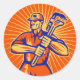 illustration of a Plumber wielding holding monkey wrench standing front view set inside circle with sunburst done in retro style