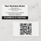 Plumbing & Heating Services Business Card featuring a QR Code on the back.