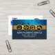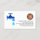 Overleaf, in a white cover, on the left is a dripping blue faucet design. Card details are over on the right with a home tools logo you can use, at the top. This is followed by the business name, its contact details and a slogan caption option which you can change.