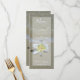 This beach design features a yellow and white frangipani / plumeria flower on the sand. Yellow and white flower with beach background elegantly framed with a simple white opaque border background. This popular tropical Hawaiian flower is ideal for a destination beach wedding. Elegant beach wedding menu card design with modern elements. Matching wedding invitations and other stationery items are also available.