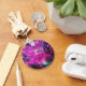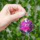Magenta keychain with "PLUR;" the acronym that stands for "Peace Love Unity Respect" in the Rave culture.