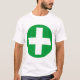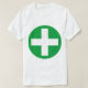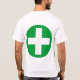 white plus sign or cross on a green circle. The design is repeated on both the front and back. However can be customised. Also available in other colours.