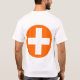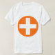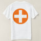 white plus sign or cross on an orange circle. The design is repeated on both the front and back. However can be customised. Also available in other colours.