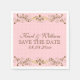 Elegant plush pink floral damasks background with gold floral lace and customisable text in suggested brown for -Save the date.