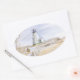 Experience a pale winter morning on the Massachusetts coast in this soothing watercolor painting of Plymouth Light in Winter. Using clean white, subtle greys, pale yellows, and cool blues, this watercolor painting recreates a frigid midwinter view of Gurnet Light’s iconic tower. Originally built in 1768, Plymouth Light was one of two lighthouses on Gurnet Point. The pictured octagonal pyramid tower was constructed in 1842 after the previous towers collapsed.