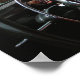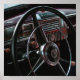 The big steering wheel of a old Plymouth woody with a large red and chrome dash behind waits for you at Moonlight Beach in Encinitas