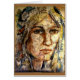 A wistful woman gazes introspectively as she considers the conflicts and dictates of her life. Torn between depending on lists for organisation and resenting their rigidity (or imposition on her very life) her face is composed of the lists she contemplates.Card.