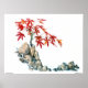 A lyrical and elegant red maple bonsai tree grows artistically from a cliff. From an original watercolor painting by P. Allingham Carlson. Poster.