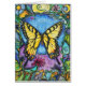 A large yellow tiger swallowtail butterfly soars in this mixed media watercolor painting. Surrounded by earth symbols and flowers, Tiger Butterfly is the latest in this Children of the Earth series. Card.