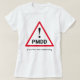 A plain white t-shirt designed to promote understanding of PMDD. It has a red warning triangle with an exclamation mark and PMDD in black inside. Below the triangle are the words, in script: I need love and understanding. It's for you to wear on those bad days. The wording in script can be changed or deleted.