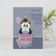 An adorable panda is tucked in a pocket and ready for a party. Birthday hat, balloons, a present and one candle set the scene. The card is easy to customise with your wording, font, font colour and choice of six paper types.