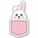 An illustration of a cute white bunny peeping on the pink pocket. This adorable white rabbit design is a gift idea for rabbit lovers, fur mum, fur dad, pet lovers and animal lovers.