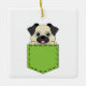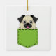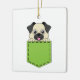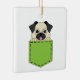 An illustration of a cute pug puppy peeping on the green pocket. This adorable pug dog design is a gift idea for dog lovers, fur mum, fur dad, pet lovers and animal lovers.