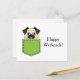 An illustration of a cute pug puppy peeping on the green pocket. This adorable pug dog design is a gift idea for dog lovers, fur mum, fur dad, pet lovers and animal lovers.