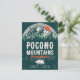 Poconos Pennsylvania design features bear mountains and tall trees. Design for anyone who loves to vacation in the Poconos. Souvenir from Pocono Mountains Pennsylvania, design for someone who loves waterfalls, trails, trail running, ultrarunning, ski and skiing