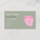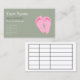 Business cards for podiatrists and chiropodists. The design features a pair of pink feet. The back of the card contains a grid, into which the dates, times and details of six appointments may be entered.