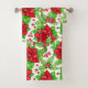 Poinsettia and holly berry watercolor Christmas Bath Towel Set