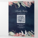 Poinsettia Christmas Candle QR Code Navy Wedding Tri-Fold Invitation