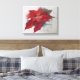 A striking seasonal digital oil painting of a Poinsettia flower in rich tones of red, burgundy, wine, peach pink, and green, perfect for Christmas or any other winter holiday.